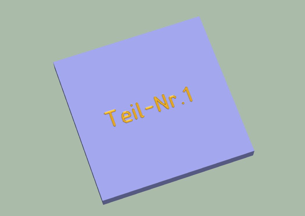 Programma NC che combina un contapezzo e un ciclo di scrittura 225. La funzione di conteggio è realizzata con una tabella affinché i valori rimangano invariati anche dopo l'arresto del controllo numerico. Se è stato realizzato un numero di pezzi definito all'inizio del programma, viene visualizzato sullo schermo e il controllo numerico resetta il contatore dopo la conferma del messaggio. Il testo da incidere si compone di due parti: un testo che si definisce come parametro stringa e un testo del valore del contatore corrente che viene letto nella tabella dal controllo numerico. Il controllo numerico combina questi dati a formare una stringa. Tale stringa è definita nel ciclo 225 come testo da incidere e viene incisa sul pezzo in una posizione immessa.